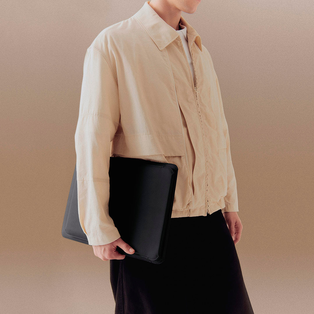 Liegt an wie eine zweite Haut und bietet essentiellen Schutz für deinen Laptop. Sora Sleeve schließt mit einem perfekt verarbeiteten Magnetverschluss, so dass selbst über Kopf nichts herausfallen kann. Ein geschlossenporiger Schaum fängt Stöße ab, während ein weiches Filz aus recycelten Textilien dein Laptop sanft ins Innere gleiten lässt. Von außen schützt ein wasserdichtes Material vor Spritzwasser, das sich gleichzeitig auch als Mousepad nützlich erweist.