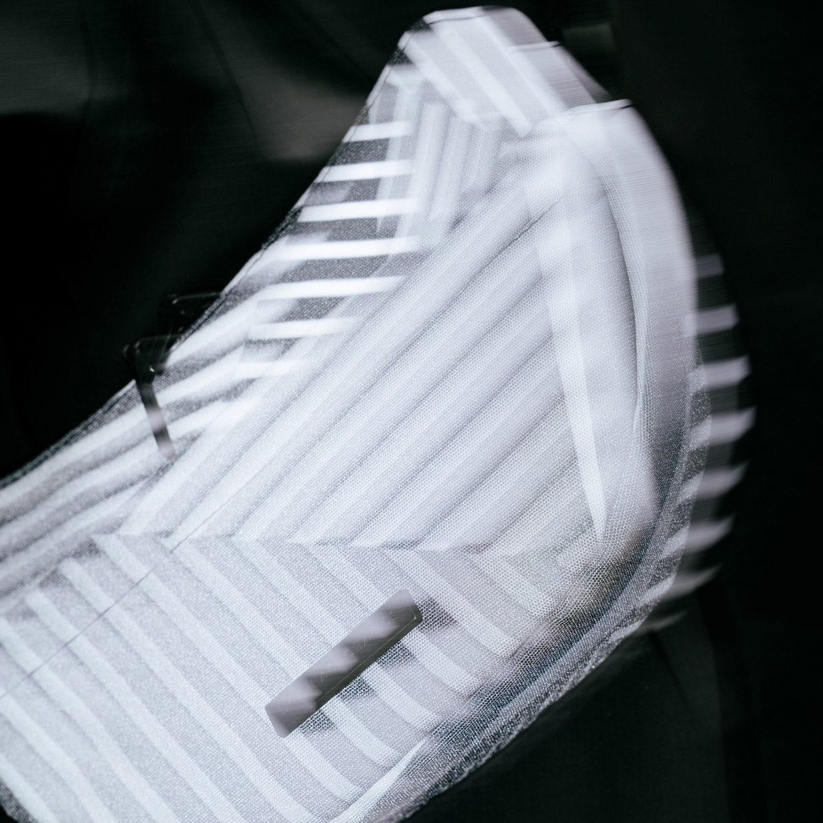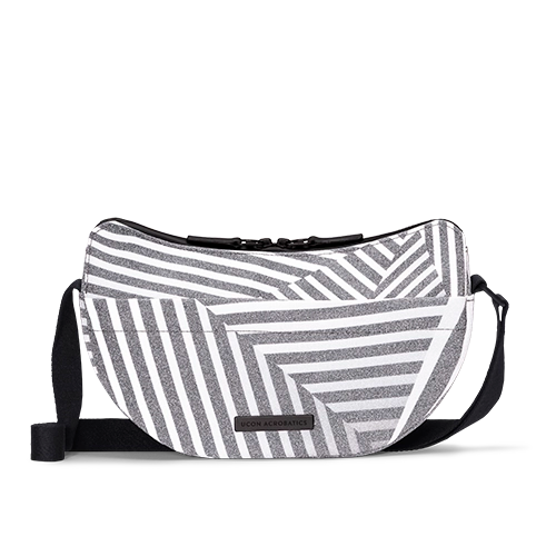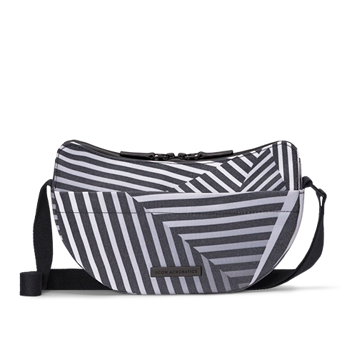 Unser speziell entwickeltes Hauptmaterial reflektiert im Dunkeln und setzt neue Maßstäbe. Es wurde aus recycelten Textilien hergestellt, dann in einem hochauflösenden Sublimationsverfahren bedruckt und von einem unserer geschätzten und talentierten Designer entworfen. Fons Hickmann ist ein in Berlin lebender Designer für visuelle Kommunikation. Sein Entwurf für Ucon Acrobatics ist ein Beispiel für eine ausdruckstarke Erkundung optischer Täuschungen und geometrischer Abstraktion. Das Design verwendet schwarz-weiß gestreifte Muster, die sich überschneiden und überlappen, um einen faszinierenden, dreidimensionalen Effekt zu erzeugen. Das Design hat einen starken "Op Art"-Einfluss, da es kontrastreiche Linien und Formen verwendet, die sich beim Betrachten zu verändern und zu pulsieren scheinen.