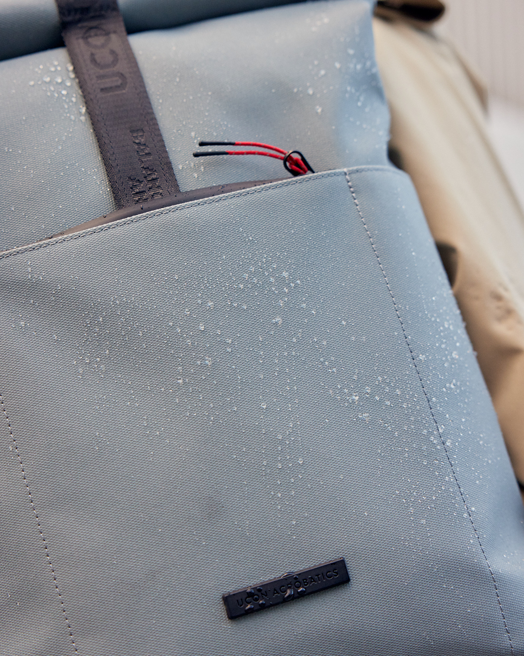 Die hydrophobe Beschichtung lässt Wasser abperlen und ist frei von Fluorcarbonen. Durch eine weitere Schicht auf der Innenseite ist auch dieser Oberstoff, wie alle unsere Oberstoffe, wasserdicht. Wir klassifizieren dieses Produkt jedoch als „wasserabweisend“. Bei starkem und anhaltendem Regen kann konstruktionsbedingt Wasser durch die Nähte eindringen. Daher empfehlen wir bei solchen Wetterlagen eine Regenhülle.