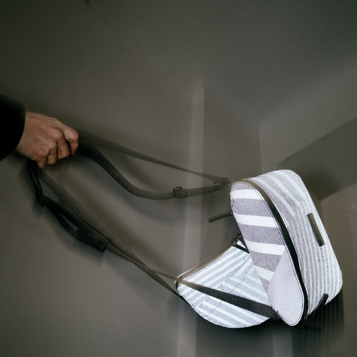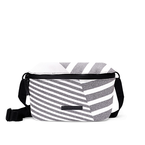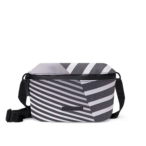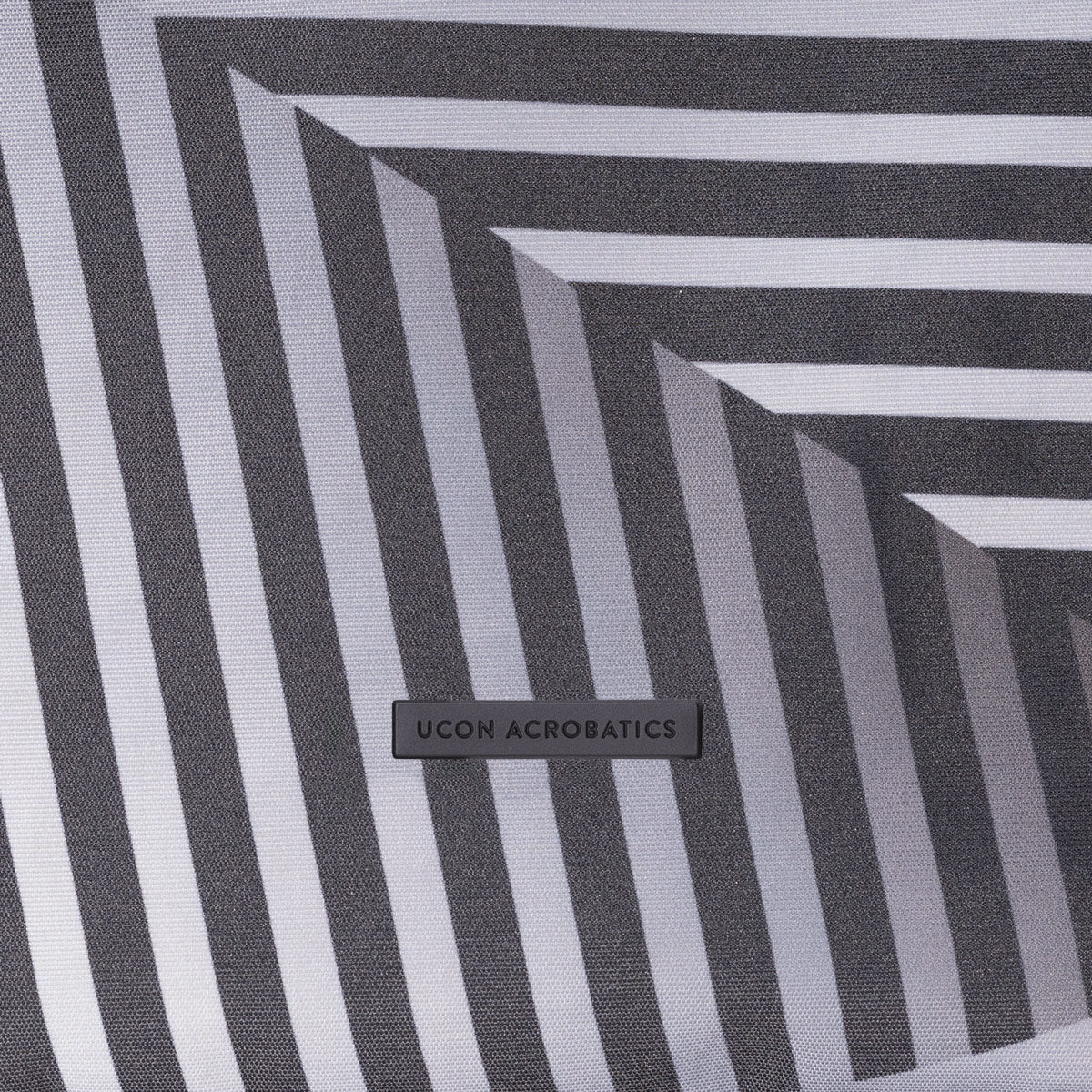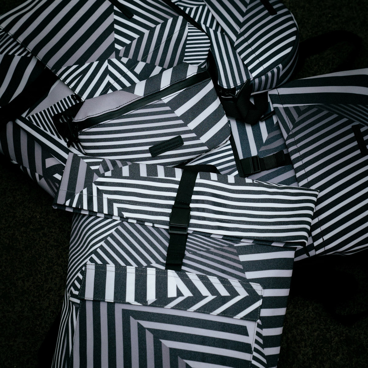 Unser speziell entwickeltes Hauptmaterial reflektiert im Dunkeln und setzt neue Maßstäbe. Es wurde aus recycelten Textilien hergestellt, dann in einem hochauflösenden Sublimationsverfahren bedruckt und von einem unserer geschätzten und talentierten Designer entworfen. Fons Hickmann ist ein in Berlin lebender Designer für visuelle Kommunikation. Sein Entwurf für Ucon Acrobatics ist ein Beispiel für eine ausdruckstarke Erkundung optischer Täuschungen und geometrischer Abstraktion. Das Design verwendet schwarz-weiß gestreifte Muster, die sich überschneiden und überlappen, um einen faszinierenden, dreidimensionalen Effekt zu erzeugen. Das Design hat einen starken "Op Art"-Einfluss, da es kontrastreiche Linien und Formen verwendet, die sich beim Betrachten zu verändern und zu pulsieren scheinen.