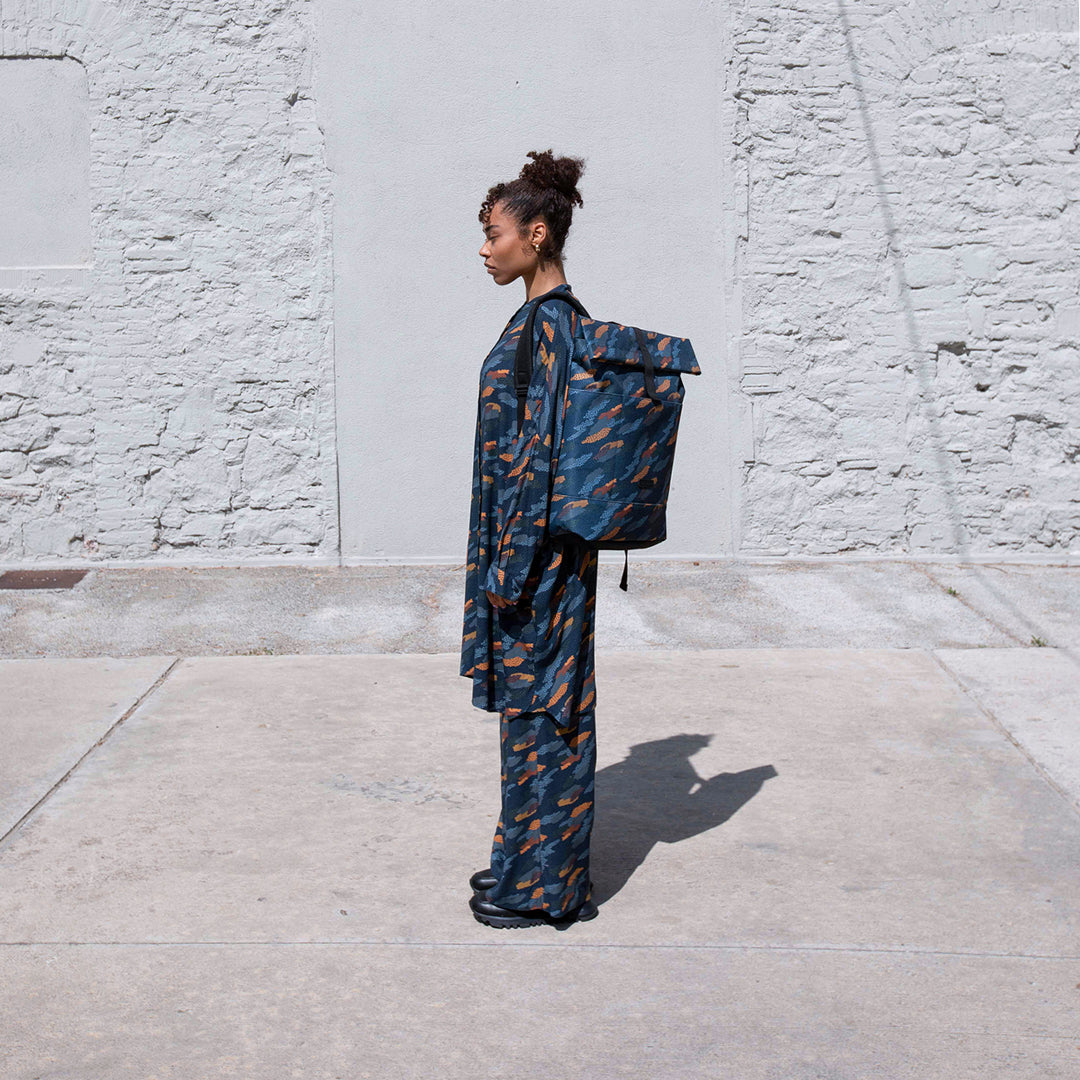 This very limited collaboration with BRAVA Fabrics, distinguished by its unique designs, highlights our B-Corp commitment to sustainability. Each item is made using recycled polyester from PET-bottles.
