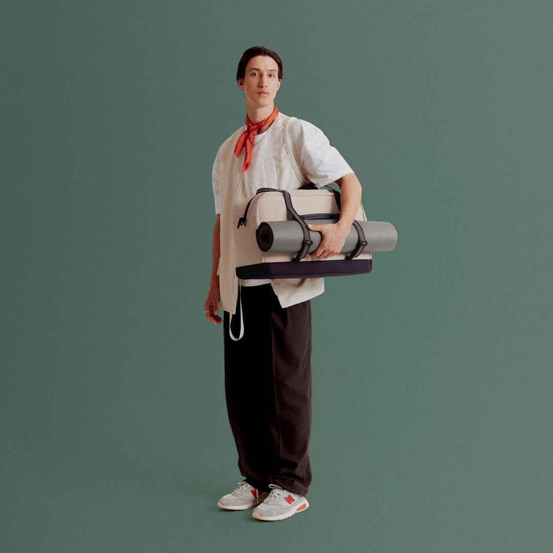 Einfach nur ins Gym, auf einen Kurztrip oder Wochenendausflug - Omasu Bag ist der perfekte Begleiter. Mit seinem eleganten Design und durchdachten Funktionen vereint dieser Weekender Funktionalität und Ästhetik in einem. Der hochwertige Reißverschluss lässt sich weit öffnen und bietet einfachen Zugang zu den beiden Innenfächern. Eine Filzplatte im Inneren bietet Schutz, lässt sich aber einfach einklappen, um den Weekender platzsparend im Schrank zu verstauen. Außen befindet sich eine zusätzliche Reißverschlusstasche und jeweils ein Halter für Yoga-Matten und Trolleys.