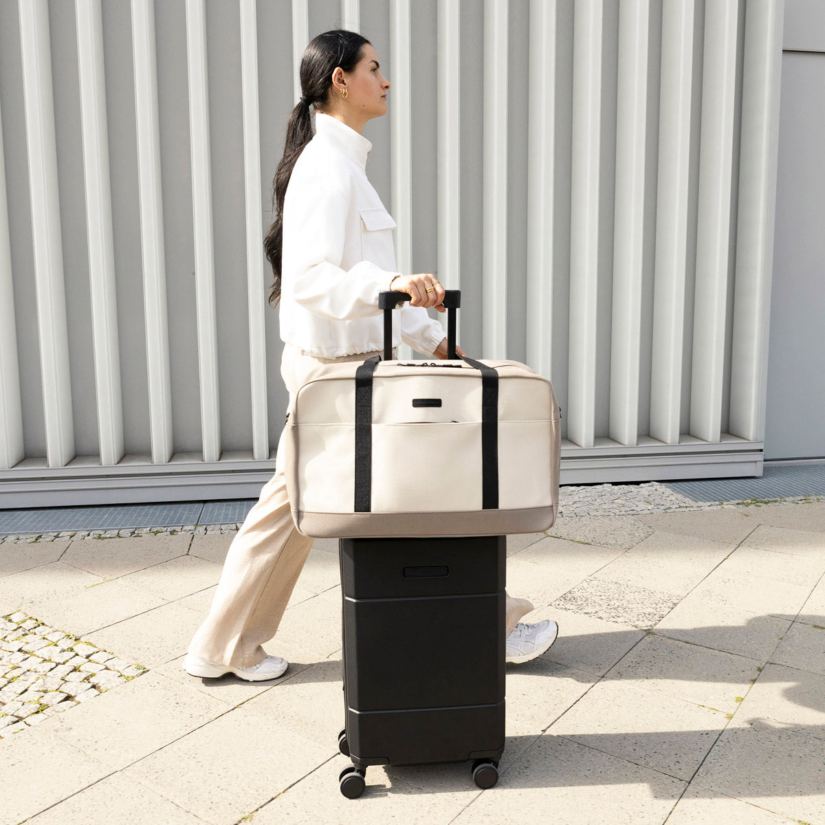 Einfach nur ins Gym, auf einen Kurztrip oder Wochenendausflug - Omasu Bag ist der perfekte Begleiter. Mit seinem eleganten Design und durchdachten Funktionen vereint dieser Weekender Funktionalität und Ästhetik in einem. Der hochwertige Reißverschluss lässt sich weit öffnen und bietet einfachen Zugang zu den beiden Innenfächern. Eine Filzplatte im Inneren bietet Schutz, lässt sich aber einfach einklappen, um den Weekender platzsparend im Schrank zu verstauen. Außen befindet sich eine zusätzliche Reißverschlusstasche und jeweils ein Halter für Yoga-Matten und Trolleys.