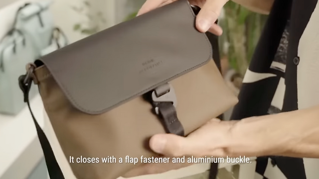 • Das Hauptfach kann mit einer Klappe und Aluminiumschnalle geschlossen werden